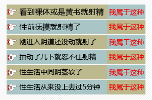2、会造成阳痿:性生活经常早泄,使得男性朋友对性生活失去了信心,从而会降低性欲,长期如此,容易导致阳痿。